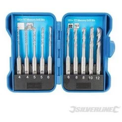 SILVERLINE Forets à Maçonnerie TCT SDS Plus, Coffret 10 Pcs, 4 – 12 Mm, 4 – 12 Mm