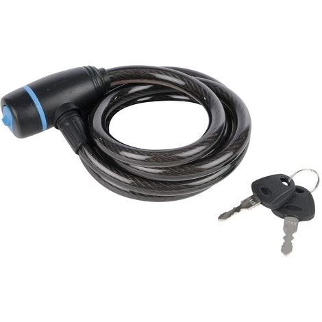 Câble longue en acier recouvert de PVC. Système de fermeture ABS robuste en alliage d’aluminium et en alliage de zinc. Fourni avec 2 clĂ©s.