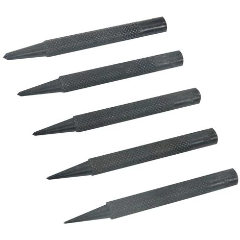 TĂŞtes carrĂ©es, poignĂ©es moletĂ©es et pointes polies. En acier trempĂ© et revenu. Longueur 80 – 100 mm.
