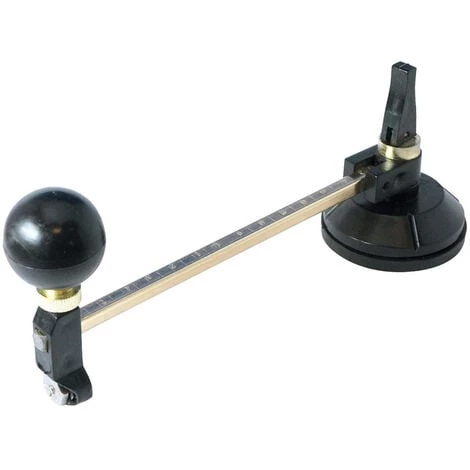 Permet de réaliser des coupes dans le verre d’une épaisseur de 2 à 8 mm, avec un diamètre de 65 à 300 mm. 6 lames robustes en carbure de tungstène fixées sur une tourelle rotative. La ventouse de 55 mm en caoutchouc fixe le bras de support coupant. Poignée pivotante garantissant un mouvement circulaire fluide. Tige d’acier laitonné à graduations métriques gravées.