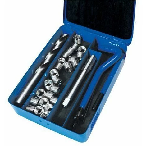 Comprend tout le nĂ©cessaire pour rĂ©parer les taraudages dans l’acier, la fonte et l’aluminium. Les filets rapportĂ©s crĂ©ent un filetage plus rĂ©sistant que le mĂ©tal d’origine. Le kit comprend : taraud HSS, foret hĂ©licoĂŻdal, broche de pose, rupteur d’entraĂ®neur et filets rapportĂ©s.