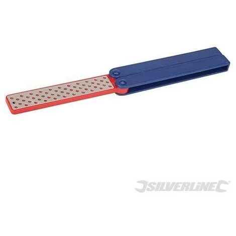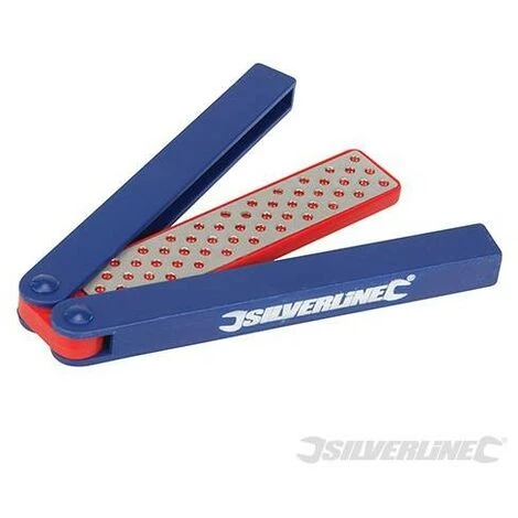 Aiguiseur Ă corps en plastique double face avec surfaces en mĂ©tal Ă revĂŞtement diamant. Permet d’affĂ»ter et aiguiser ciseaux Ă bois, fraises, fers Ă rabot et la plupart des outils manuels. Compatible pour un usage humide ou Ă sec. PoignĂ©e pliante pour un rangement facile dans les boĂ®te-Ă -outils, poches et ceintures Ă outils. Grain fin et moyen.