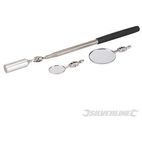 Embout aimantĂ©/miroirs d’inspection Ă manche tĂ©lescopique. Comprend tĂŞte magnĂ©tique, miroir standard et miroir grossissant. PoignĂ©e gainĂ©e de vinyle, extensible jusqu’Ă 800 mm.