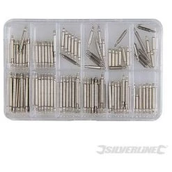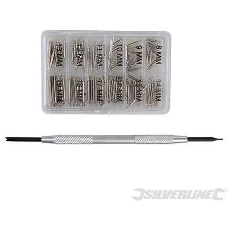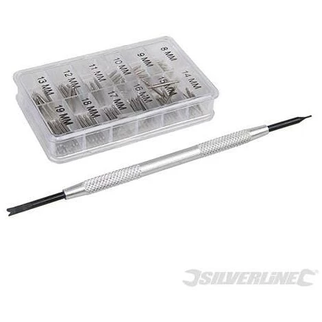 Kit comprenant 100 barrettes en acier inoxydable ultrarésistant et pointeau en aluminium. Barrette à ressort à simple épaulement convenant aux fermoirs ultrafins. Pour le remplacement de barrettes de bracelets de montres perdues ou cassés. Le kit comprend 100 barrettes, un pointeau et un coffret de rangement transparent.
