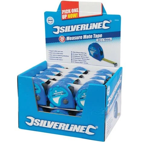 SILVERLINE Boîte Présentoir De 30 Mètres Ruban Measure Mate – 30 Pcs 3 M X 16 Mm