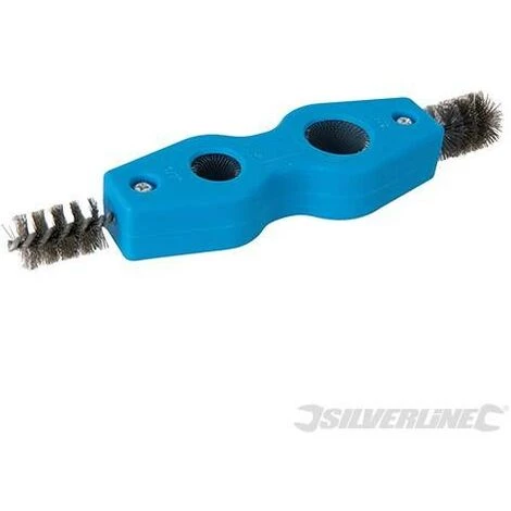 Brosses en acier au carbone permettant de nettoyer et Ă©bavurer l’intĂ©rieur et l’extĂ©rieur des tuyaux en cuivre de 15 mm et 22 mm.