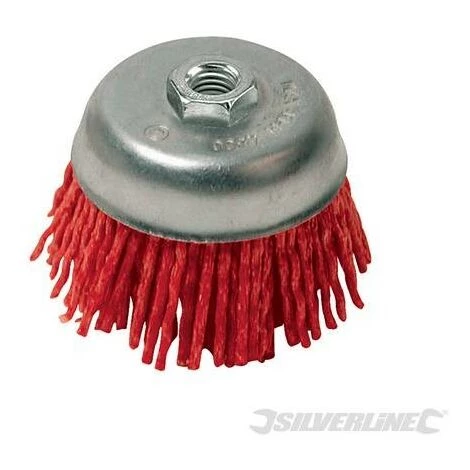 Fils de nylon imprégnés de grains grossiers en carbure de silicium pour ébarber et traiter les surfaces en métal et en bois. Anti-étincelles. Embout femelle M14 x 2.