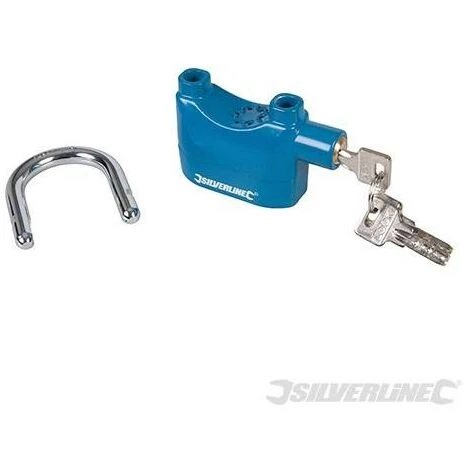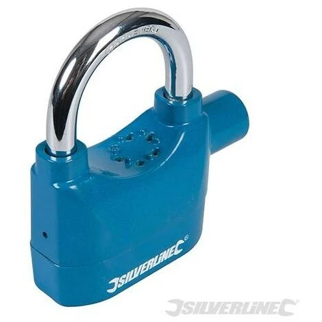 Cadenas en acier alliage d’aluminium haute rĂ©sistance thermolaquĂ© Ă anse chromĂ©e. Produit une alarme perçante de 110 dB Ă deux tons si le cadenas activĂ© est forcĂ©. Pour protĂ©ger motos, vĂ©los, remorques, machines, meubles de jardin, garages, etc. RĂ©initialisation automatique, alarme impossible Ă Ă©touffer. Peut s’utiliser avec ou sans alarme. Fourni avec 3 clĂ©s et 1 pile LR44. Dimensions (L x l x h) : 70 x 27 x 96 mm. Ouverture de l’anse (horiz. x vertic.) : 38 mm x 38 mm. Diamètre de L’anse : 7,9 mm. Poids : 0,315 kg.