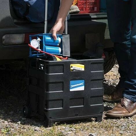 Caisse lĂ©gère Ă roulettes, poignĂ©e tĂ©lescopique. Se replie complètement pour faciliter le rangement. S’ouvre en quelques secondes. Facile Ă ranger dans le coffre d’une voiture. Roulettes caoutchoutĂ©es. Dimensions (H x L x l) : 360 x 380 x 300 mm. Hauteur (Ă©tendu) : 840 mm.