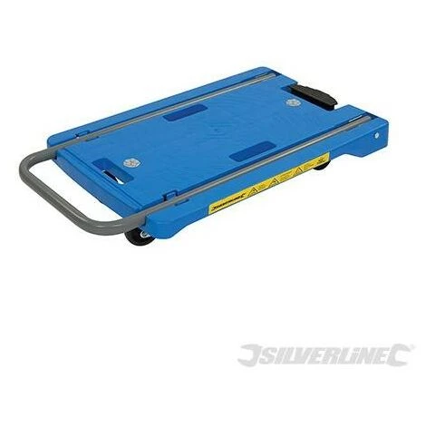 Chariot plateforme de structure en polypropylène à la fois légère et robuste avec poignée de poussée rabattable. Mécanisme de verrouillage actionné par pédale. 2 patins de caoutchouc antidérapants pour éviter que la cargaison ne glisse. Parfait pour déplacer des objets lourds et encombrants. Pourvu de 2 roues fixes et de 2 roues pivotantes à roulement à billes ultrarésistant. Capacité de charge maximale : 100 kg. Dimensions (L x l x H): 690 x 385 x 735 mm. Poids : 4 kg.