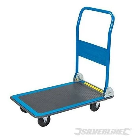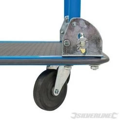 Châssis en acier peint par poudrage. Base en acier embouti renforcé avec plateforme antidérapante. Contour antichoc pour protéger les murs et les cadres de portes. Comporte 2 roulettes fixes et 2 roulettes pivotantes silencieuses, pour manœuvrer facilement. Poignée pliante pour un transport et un rangement facilités. Hauteur : 800 mm. Dimensions de la plateforme : 465 x 725 mm. Capacité max. 150 kg.
