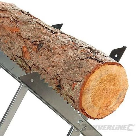 Chevalet pliant de construction robuste en acier Ă bords dentelĂ©s. 3 rĂ©glages en largeur. Pour sciage Ă la scie Ă main ou Ă la tronçonneuse de bĂ»ches allant jusqu’Ă 150 kg et 250 mm de diamètre. Dimensions une fois assemblĂ© : 790 mm (hauteur) x 850 mm (longueur). Pliable, pour un rangement facile.