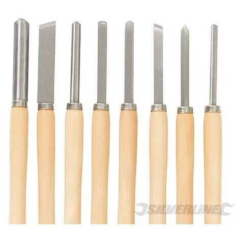 Poignées longues en bois blanc pour une prise à deux mains. Tiges et tranchants en acier à outils. Pour les tours à bois et le façonnage du bois. Longueur : 360 mm.