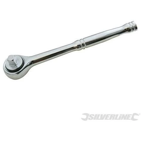 Clé à cliquet réversible en acier chrome-vanadium.