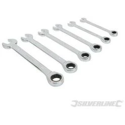 ClĂ©s mixtes Ă cliquet de dimensions mĂ©triques. En acier chrome-vanadium trempĂ© et revenu avec fini poli miroir. ChromĂ©es pour rĂ©sister Ă la corrosion. Cliquet avec angle de reprise de 5°. Facilite l’accès aux espaces exigus. Tailles assorties rangĂ©es dans une trousse Ă rouler en nylon robuste : 8, 10, 12, 13, 14 et 17 mm.
