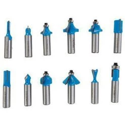 Ensemble de 12 fraises pour défonceuses 12 mm en carbure de tungstène.
