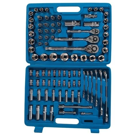 6 clĂ©s mixtes 10-19 mm ; douilles profondes : 8 x 1/4″ (6-13 mm) et 4 x 3/8″ (10-13mm), 17 embouts douilles 3/8″ (TRX, plat, Phillips et PZD) ; poignĂ©es cliquet 1/4″, 3/8″ et 1/2″ ; douilles bougie 16 et 21 mm, rallonges 2″ x 1/4″, rallonges 3″, 6″ et 3/8″, cardan 3/8″ ; douilles : 10 x 1/4″ (4-13 mm), 10 x 1/4″ (5/32″ Ă 1/2″), 9 x 3/8″ (10-119 mm), 7 x 3/8″ (3/8″ Ă 3/4″), 5 x 1/2″ (20-27 mm), 5 x 1/2″ (25/32″ Ă 11/16″)6 clĂ©s mixtes 10-19 mm ; douilles profondes : 8 x 1/4″ (6-13 mm) et 4 x 3/8″ (10-13mm), 17 embouts douilles 3/8″ (TRX, plat, Phillips et PZD) ; poignĂ©es cliquet 1/4″, 3/8″ et 1/2″ ; douilles bougie 16 et 21 mm, rallonges 2″ x 1/4″, rallonges 3″, 6″ et 3/8″, cardan 3/8″ ; douilles : 10 x 1/4″ (4-13 mm), 10 x 1/4″ (5/32″ Ă 1/2″), 9 x 3/8″ (10-119 mm), 7 x 3/8″ (3/8″ Ă 3/4″), 5 x 1/2″ (20-27 mm), 5 x 1/2″ (25/32″ Ă 11/16″)6 clĂ©s mixtes 10-19 mm ; douilles profondes : 8 x 1/4 » (6-13 mm) et 4 x 3/8 » (10-13mm), 17 embouts douilles 3/8 » (TRX, plat, Phillips et PZD) ; poignĂ©es cliquet 1/4 », 3/8 » et 1/2 » ; douilles bougie 16 et 21 mm, rallonges 2 » x 1/4 », rallonges 3 », 6 » et 3/8 », cardan 3/8 » ; douilles : 10 x 1/4 » (4-13 mm), 10 x 1/4 » (5/32 » Ă 1/2 »), 9 x 3/8 » (10-119 mm), 7 x 3/8 » (3/8 » Ă 3/4 »), 5 x 1/2 » (20-27 mm), 5 x 1/2 » (25/32 » Ă 11/16 »)
