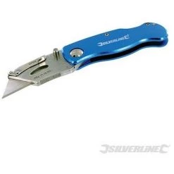 Cutter maintenu en position dépliée par action de verrouillage. Levier de déblocage rapide facilitant le changement de la lame. Fourni avec 10 lames robustes tout usage.