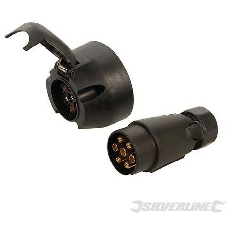 Construction en ABS avec broches en laiton. Bague et abattant de verrouillage sécurisé. Permet aux feux des remorques et caravanes de copier ceux du véhicule tracteur. Fiche et prise de remplacement à 7 broches pour caravanes et remorques.