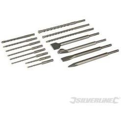 Coffret pratique comprenant les forets et burins à maçonnerie les plus communément utilisés. Mallette robuste moulée par soufflage. Comprend : forets : 110 mm (5,5 et 6 mm), 160 mm (5,5, 6, 6,5, 7, 8 et 10 mm), 260 mm (10, 12 et 16 mm) ; burins à maçonnerie : 250 mm (20 et 40 mm), pointu 250 mm et à rainurer 245 mm.
