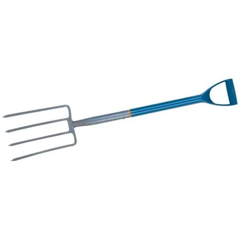 Manche en polypropylène et poignée en D. Acier de dureté Rockwell C de 38/45. Finition martelée à revêtement époxy, dents offrant une certaine souplesse. Individuellement testées pendant 3 minutes sous une charge de 55 kg.