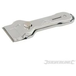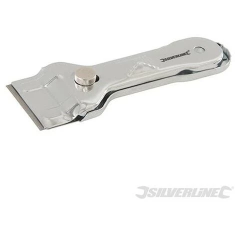Grattoir en acier chromé avec profil en relief pour un réglage facile. Vis moletée pour un changement de lame sans outils. La poignée se transpose par dessus la lame pour un rangement plus sûr. Idéal pour enlever les résidus de peinture sur les vitres et autres surfaces lisses. Comprend 10 lames de grattoir de rechange à double extrémités. Compatible avec les lames double extrémité pour grattoir Silverline réf. 427668.