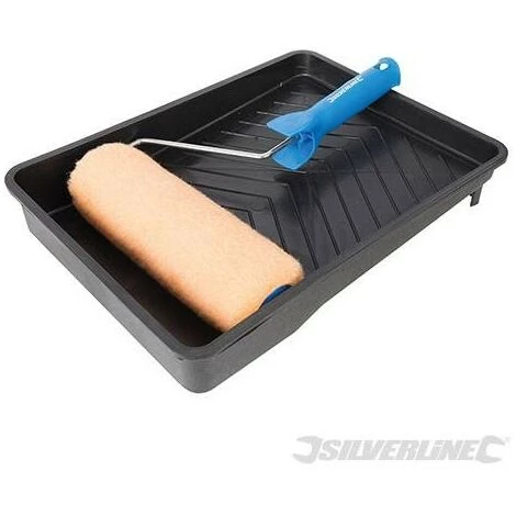 Rouleau de peinture Ă poils moyens pour utilisation avec peintures Ă©mulsions Ă base d’eau et d’huile. Bac en polypropylène au fond texturĂ© pour garantir une rĂ©partition uniforme de la peinture sur le rouleau. Compatible avec une perche tĂ©lescopique dont le modèle Silverline (rĂ©f. 633699).