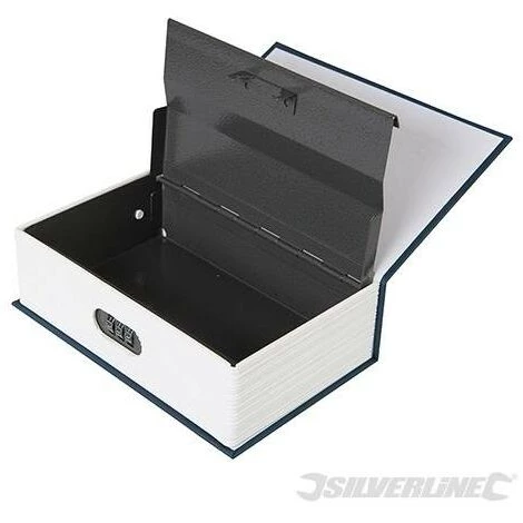 Petit coffre-fort en mĂ©tal robuste prenant astucieusement l’apparence d’un livre pour passer inaperçu. Couverture très rĂ©aliste en carton. Combinaison reprogrammable Ă 3 chiffres. Parfait pour y entreposer petits montants en espèces, documents importants et petits objets de valeur.