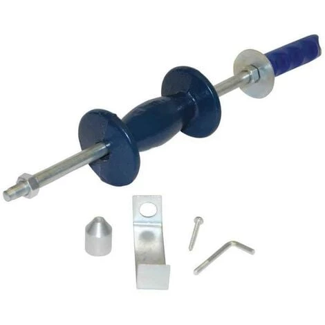 Comprend 1 embout conique, 2 vis d’extraction, 1 crochet en L et 1 marteau en fonte
