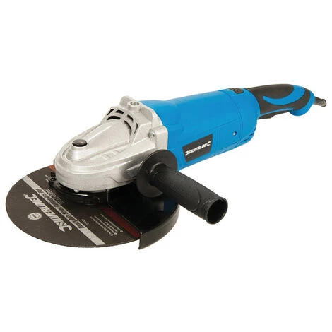 Meuleuse d’angle de 230 mm de diamètre pour le meulage et le tronçonnage de mĂ©tal, pierre et bĂ©ton.