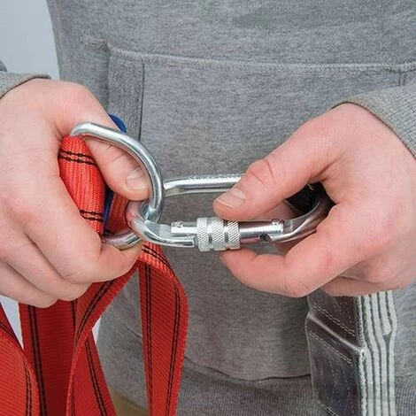 Mousqueton en acier allié forgé avec bague de verrouillage à visser. Ouverture maximale du doigt de 19 mm. 100 % testé en usine avec une charge de 16 kN et force de rupture max 25 kN. Conforme à la norme EN362. Poids : 170 g.