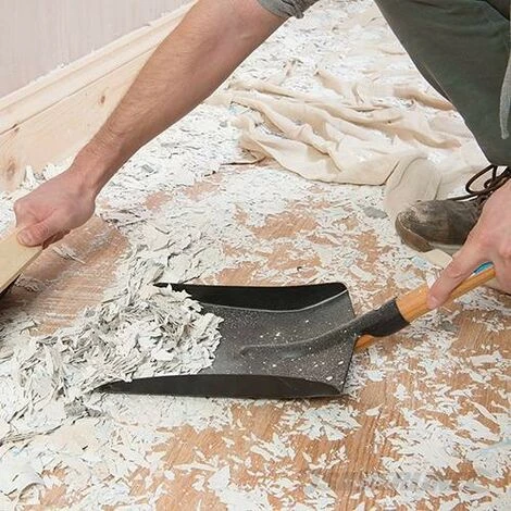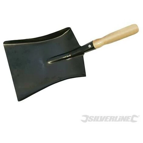 Pelle de ménage traditionnelle à tête en acier pressé, poignée en bois dur et bords relevés pour éviter tout déversement accidentel.