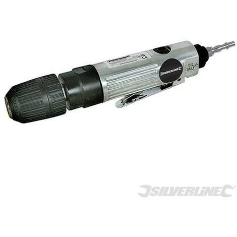 Perceuse pneumatique droite Ă mandrin de 10 mm auto-serrant. LĂ©gère et compacte. Vitesse Ă vide 2 500 min-1. Consommation d’air de 184 L/min. Longueur totale : 200 mm.
