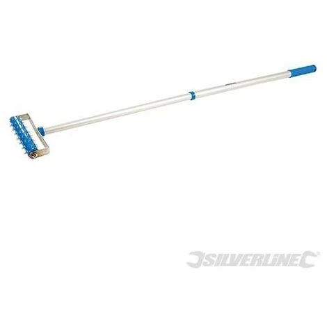 Rouleau en polymère ultrarĂ©sistant pourvu de pointes en acier montĂ© sur un manche tĂ©lescopique en aluminium anodisĂ©. Permet de perforer tout revĂŞtement mural afin d’accĂ©lĂ©rer le processus de retrait de tapisserie en favorisant l’action d’une dĂ©colleuse Ă vapeur. Le manche tĂ©lescopique se bloque par simple mouvement de pivotement et est pourvu d’une poignĂ©e ergonomique en polymère et de trous de suspension. Pour utilisation sur tout type de papier peint. Fourni avec cache de protection rĂ©utilisable. Dimensions de rouleau : 150 x 40 mm (diamètre) ; 580 – 1 000 mm (longueur).