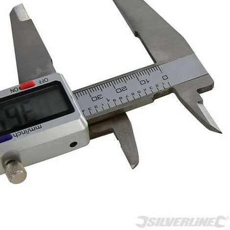 Pied Ă coulisse numĂ©rique Ă quatre fonctions : mesures internes, externes, de profondeur et d’Ă©paulements. RĂ©glage par vis moletĂ©e et remise Ă zĂ©ro en toute position. PrĂ©cision Ă 0,01 mm près.