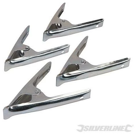 Pinces à ressort polyvalentes permettant de retenir toiles, bâches et dispositifs de protection divers. Corps en acier résistant avec ressort conçu pour un usage intensif. Particulièrement utiles sur les marchés.