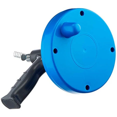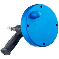 Tige spiralée à actionner manuellement dans la canalisation, qui se rembobine dans le boîtier en plastique, la maintenant à distance des surfaces propres dans la salle de bain et la cuisine.