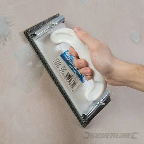 Ponceuse Ă main pour plaques de plâtre, joints, murs et plafonds. 2 pinces de fixation permettent de retenir une grille de ponçage ou du papier abrasif sur un bloc de caoutchouc. Compatible avec les rouleaux d’abrasifs en corindon de 10 m et 50 m.