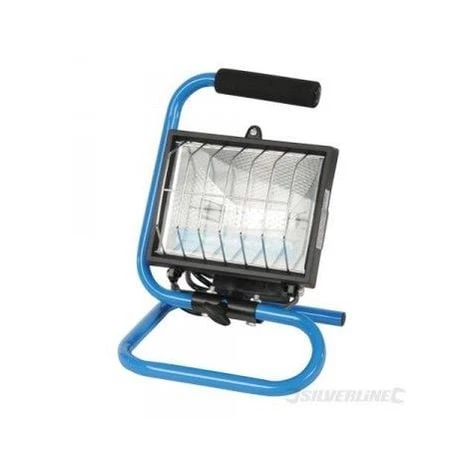 Projecteur de travail Silverline puissance 400W, pratique pour l’Ă©clairage sur chantier ou en atelier. Structure en fonte d’aluminium ultrarĂ©sistanteGrille de sĂ©curitĂ©Pied rĂ©glableAmpoule : tube halogène Puissance lumineuse / lumens : 7 000 lumens Alimentation : 230V Classe IP : IP54 Puissance : 400 W Fonction 01 : Lumiere puissante Longueur du câble : 1,6 m Poids du produit : 0,5 kg Garantie 3 ans en vous enregistrant sur Silverlinetools.fr