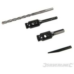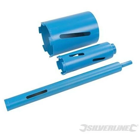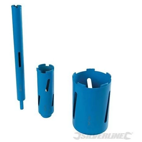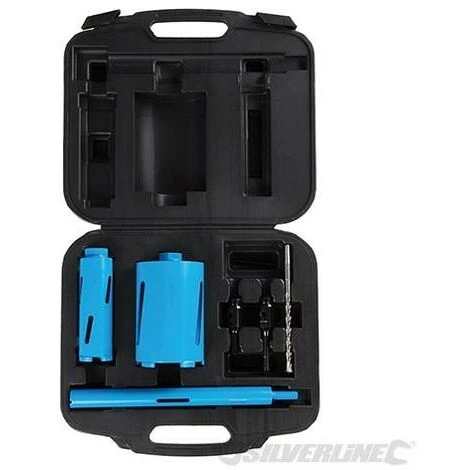 Scies trĂ©pans diamantĂ©es haute performance, pour perçage Ă sec de trous nets quasiment sans Ă©clats. Comprend 3 trĂ©pans (28, 52 et 107 mm), 1 porte-trĂ©pan SDS Plus, 1 porte-trĂ©pan hexagonal ; 1 foret de centrage conique de 10 mm et 1 chasse-cĂ´ne. Ă€ utiliser avec une perceuse Ă dĂ©brayage de sĂ©curitĂ©. Utilisation non recommandĂ©e et outil non garanti en mode d’utilisation ‘perforation’.