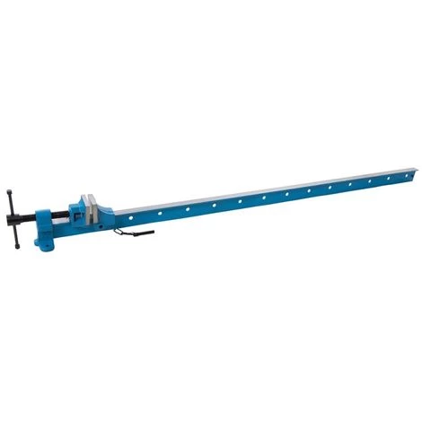 Serre-joint dormant réalisé dans un profilé en T avec finition peinte. Sabots et mâchoires en fonte. Pour une force de serrage élevée.