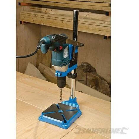 Pour les perceuses Ă©lectriques dont le diamètre de serrage est de 43 mm (ou 38 mm avec la bague de rĂ©duction fournie). Profondeur de perçage jusqu’Ă 60 mm. Embase en fonte Ă points de fixation. Échelle de rĂ©glage de profondeur et butĂ©e.