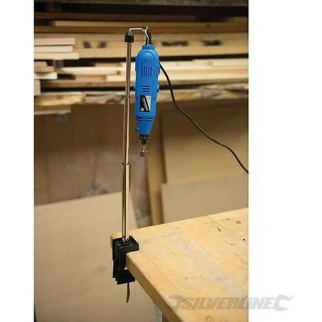 Fixation sur le bord du plan de travail avec tige ajustable. Permet de monter l’outil rotatif sur le crochet et ainsi Ă portĂ©e de main. ÉquipĂ© de trous pour un montage permanent. Compatible avec la plupart des outils rotatifs Silverline, GMC et Dremel. AdaptĂ© Ă la rallonge d’arbre flexible pour outil rotatif et Ă l’outil rotatif Silverline.