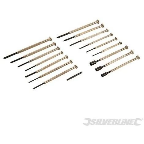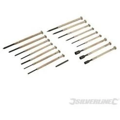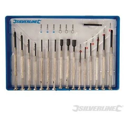 Tiges en acier trempĂ© et revenu. TĂŞtes hexagonales pivotantes. L’ensemble comprend : pointes Phillips PH1-1, PH1-2, PH0 et PH0-2 ; pointes plates : 1 , 1,4 ; 2 ; 2,4 ; 3 et 3,8 mm ; pointes hexagonales : 1,5 ; 2 et 2,5 mm et tourne-Ă©crous 3 ; 4 et 5 mm.