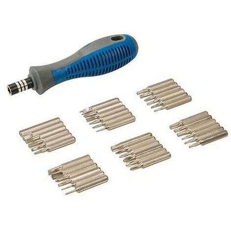 Embout de tournevis de précision en acier au carbone chromé avec poignée porte-embout confortable.Fournis avec un porte-embout de précision et 36 embouts en acier.